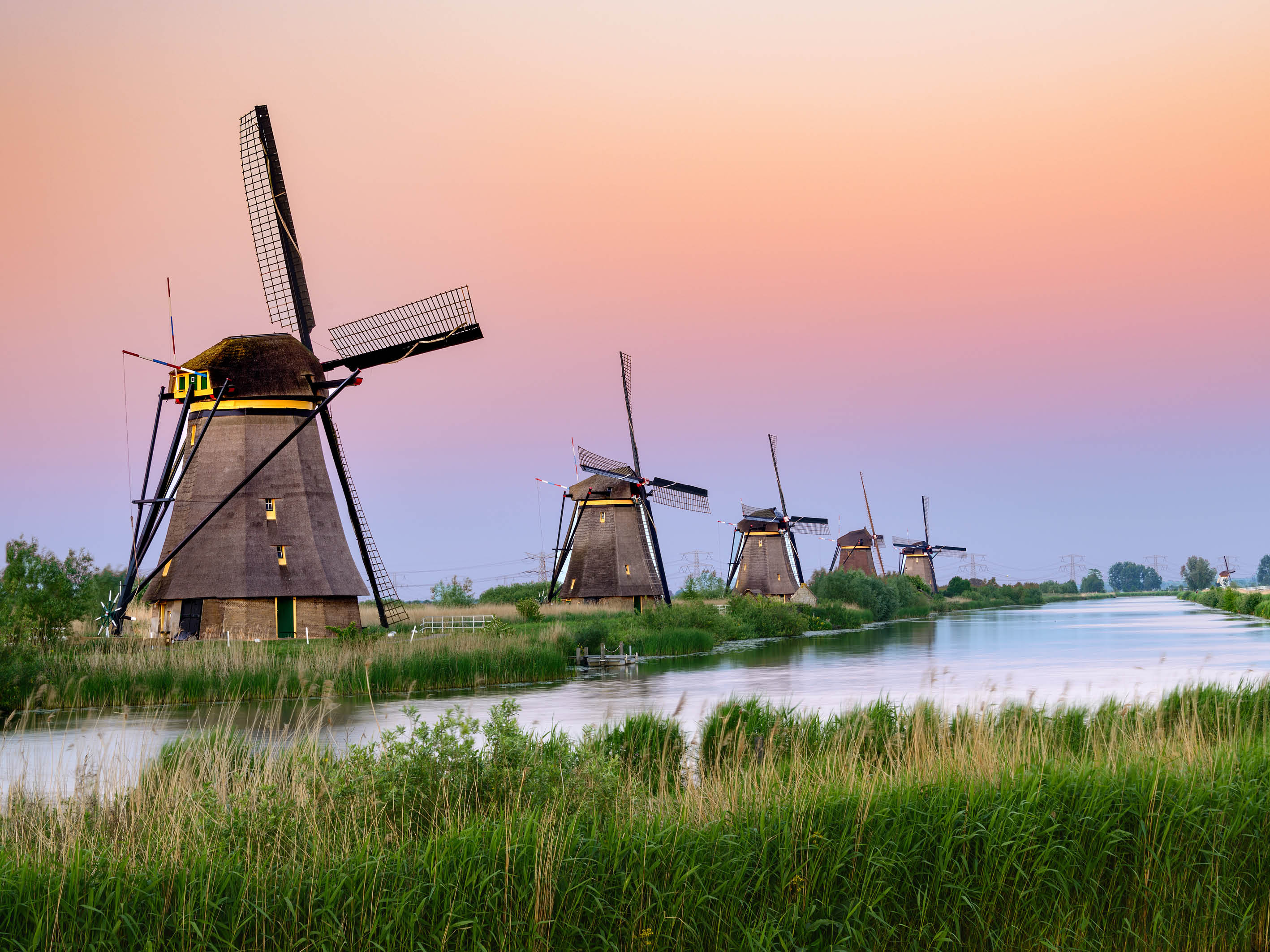 Hohe Deiche, saftiges Grasland, stolze Kopfweiden … Elemente, mit denen so mancher Dichter etwas anfangen kann. Wind und Wasser rahmen die reizvolle holländische Polderlandschaft ein. Und sie wäre nicht komplett ohne die urtypischen holländischen Windmühlen von Kinderdijk. Neunzehn davon sind bewohnt – oder eigentlich achtzehn, denn eine der Mühlen dient als Museumsmühle und vermittelt einen Eindruck davon, wie der Müller mit seiner Familie hier bis 1950 lebte und arbeitete. Schau unbedingt hinein, zumal alle Mühlen von der UNESCO in die Liste des Weltkulturerbes aufgenommen wurden. Nirgendwo auf der Welt stehen so viele Mühlen so nah beieinander wie hier. Draußen knarren die Flügel, das Schilf wiegt sich im Wind, das Wasser plätschert gegen das Ufer … Futter für radelnde Poeten.